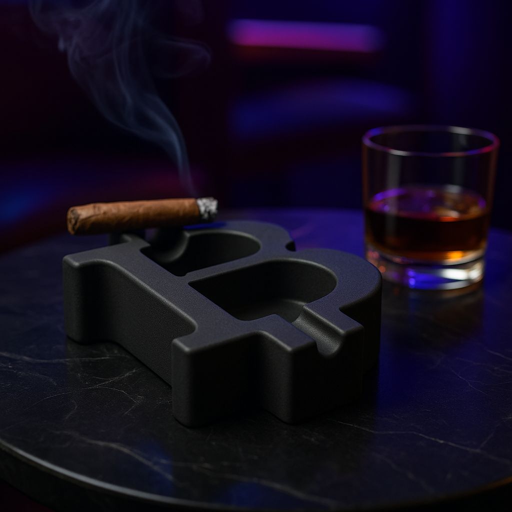 The B-ASH ashtray is a uniquely designed smoking accessory crafted in the iconic Bitcoin “₿” shape, offering both style and function. It serves as a practical holder for cigars or cigarettes while doubling as a collectible piece that reflects crypto culture. The B-ASH is produced using durable materials such as resin, marble, wood, or metal, ensuring long-lasting use and a premium finish. A B-ASH is a functional product and a statement item, symbolizing individuality and innovation in smoking accessories, and can be purchased, gifted, or showcased as a distinctive piece of design.