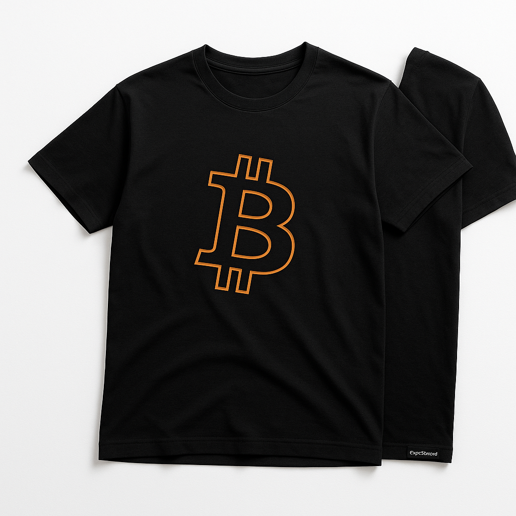 Bluzë minimaliste me logon e Bitcoin-it në kontur portokalli. E rehatshme për përditë, perfekte për çdo maxi bull apo hodler diskret.